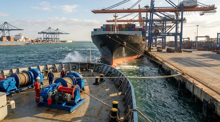 التحدي الأساسي في إرساء سفينة كبيرة هو إدارة القوى البيئية الهائلة للرياح والتيارات. الرافعة ليست مجرد جهاز سحب؛ إنها نظام دقيق للتحكم في الشد يوفر القوة الميكانيكية اللازمة لمواجهة هذه القوى، مما يضمن بقاء السفينة مستقرة لعمليات آمنة وفعالة في الميناء.
